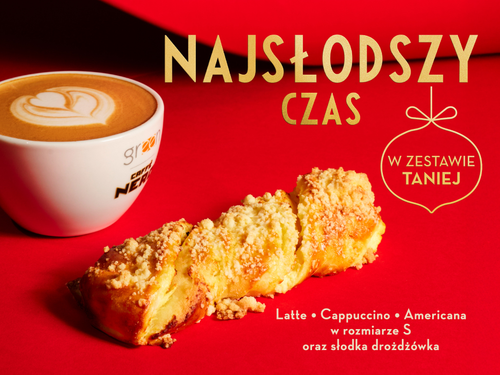 Ciesz się idealnym duetem: kawa klasyczna w rozmiarze S i słodka drożdżówka w zestawie w promocyjnej cenie: 19,90 zł !