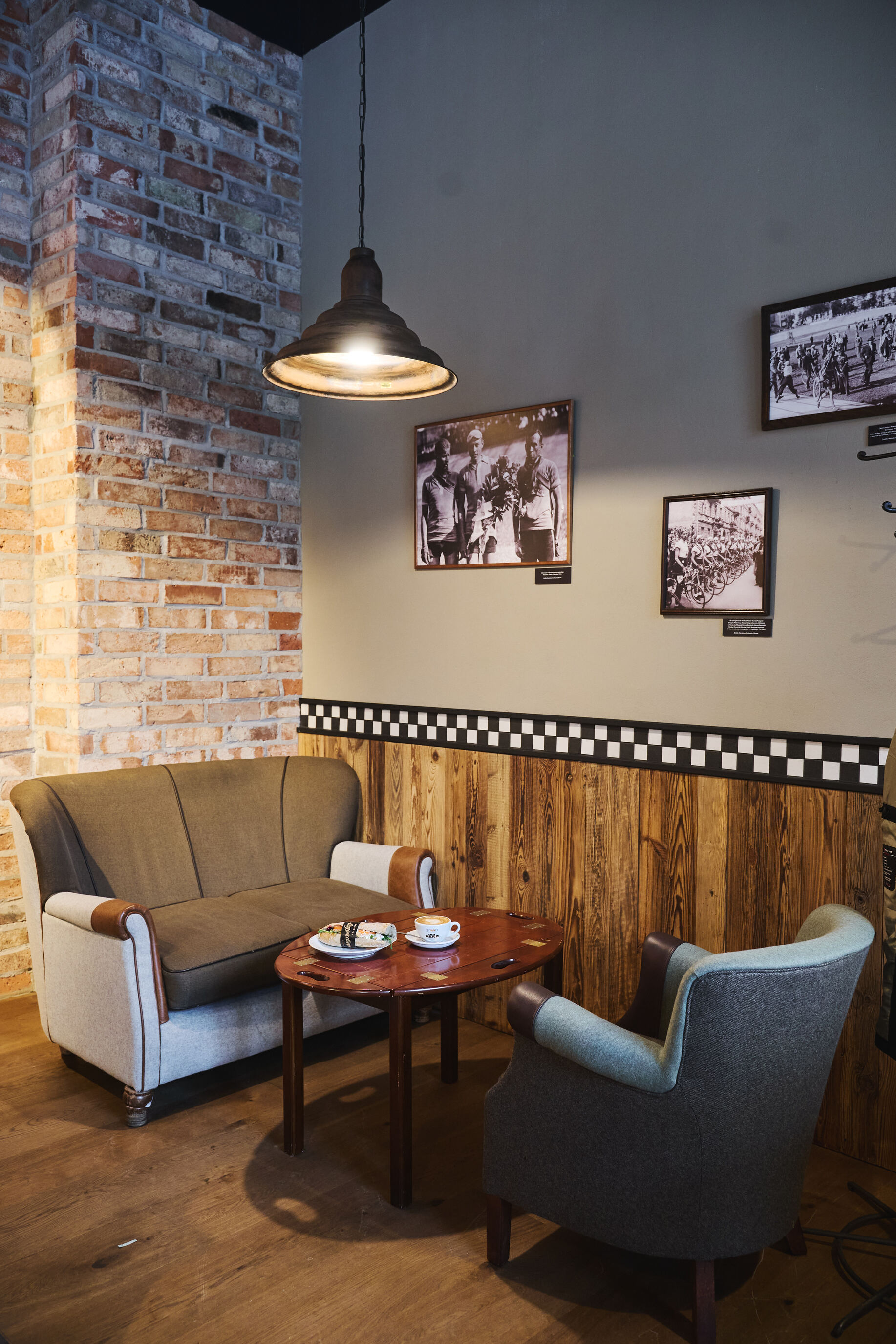 Whenever we open new locations, we always seek inspiration from the local context. That’s why the interior design of our SOHO café pays homage to Praga’s history. Inside, you’ll find photographs referencing the nearby historic "Orzeł" velodrome, which was once an icon of Warsaw modernism.