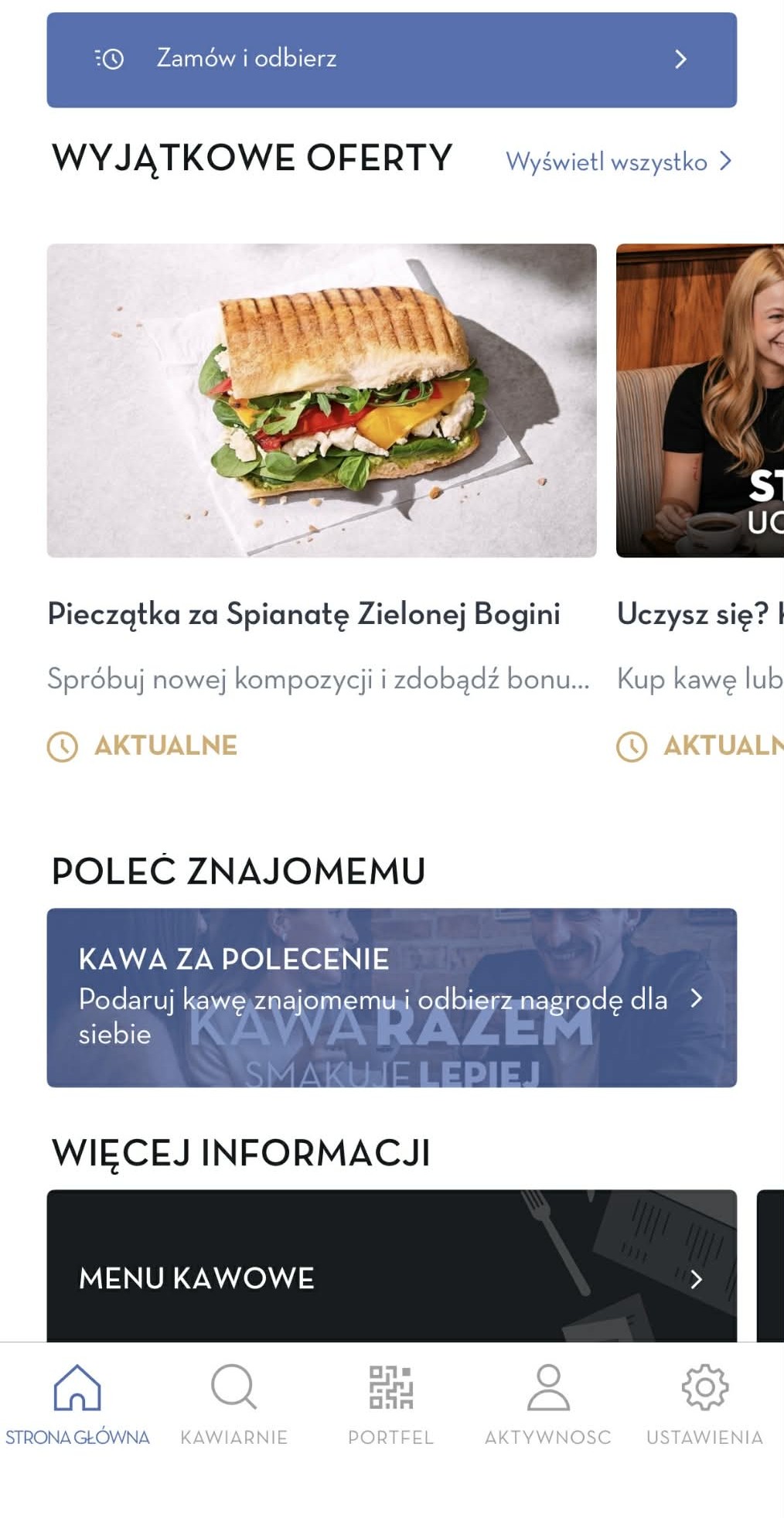 Jeśli znajomy zainstaluje aplikację z Twojego polecenia, to od razu otrzyma voucher na darmową kawę. Ty, jako polecający otrzymasz swój voucher na darmową kawę, jak tylko znajomy dokona swojej pierwszej transakcji. Nie obowiązuje minimalny próg zakupu, ale żeby otrzymać nagrodę za polecenie, pierwsza transakcja znajomego nie może być opłacona voucherem.
