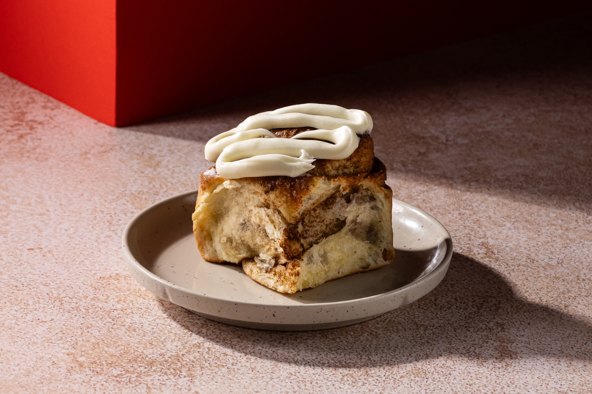 Puszysta bułeczka drożdżowa z dużą ilością cynamonu oraz polewą z...